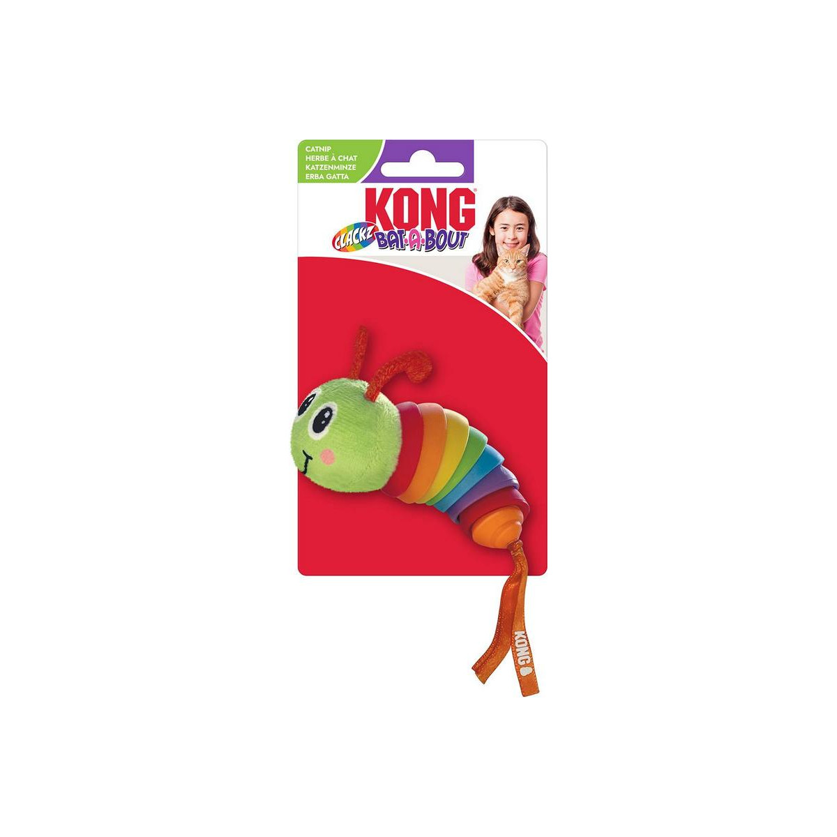KONG Bat-a-Bout Clackz Caterpillar brings a whirlwind of color to cat toys! The insect's body is made up of discs that twist, turn and clack during play. Its plush head is filled with KONG Premium North American Catnip and rustling material to unleash energetic jousting. In addition, ribbons and wiggling antennae encourage chasing and pawing, for solo play sessions.