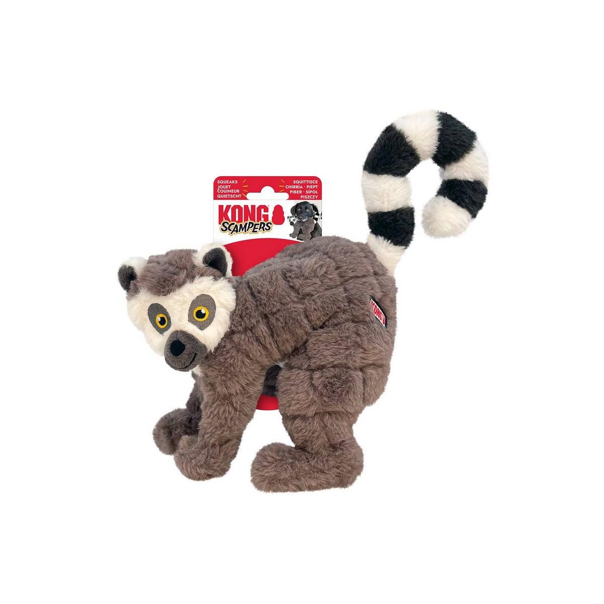 KONG Scampers Lemur feature a discreet squeaker that stimulates curiosity, while their plush body is ideal for cuddling. The discreet squeaker stimulates curiosity and instinctive play. Padded and lined for durability. Soft plush for cuddling.