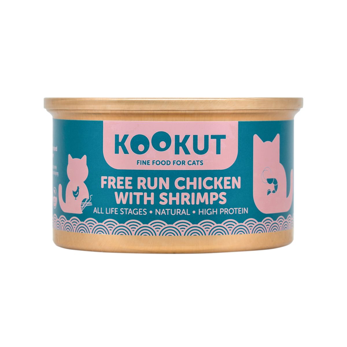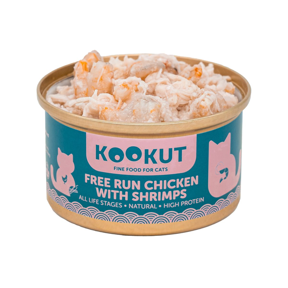 Free Run Chicken & Shrimps Kookut recipe for cats is perfectly cooked with fresh chicken breast and shrimps.