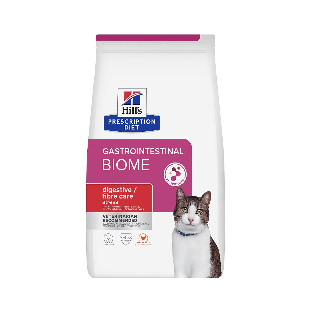 Hill's Prescription Diet Gastrointestinal Biome - Dry Cat Food is a palatable nutrition with an exclusive formula that helps reduce stress in cats with digestive upsets. Clinically formulated with high fiber to promote healthy, regular stools in just 24 hours. Developed with ActivBiome+ ingredient technology to quickly nourish the gut microbiome and help manage complex gastrointestinal disorders. Also contains ingredients to help reduce stress.